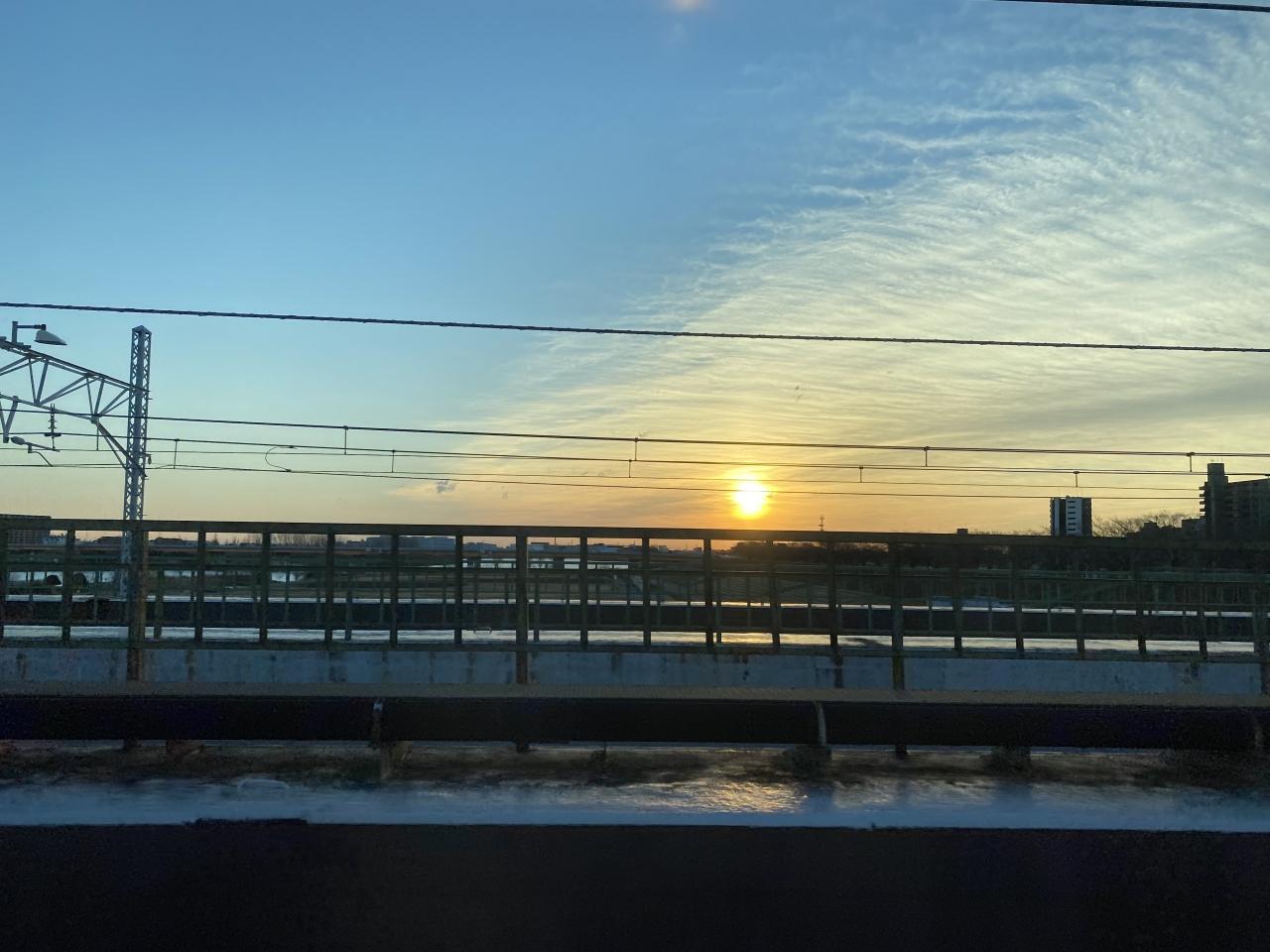 荒川を渡る6時半過ぎに太陽が昇って来ました。