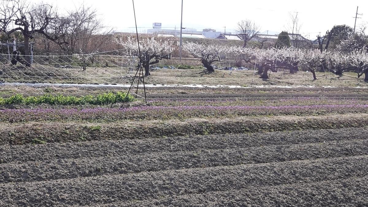 堤と堤の間の畑にて蓮華でしょうか -