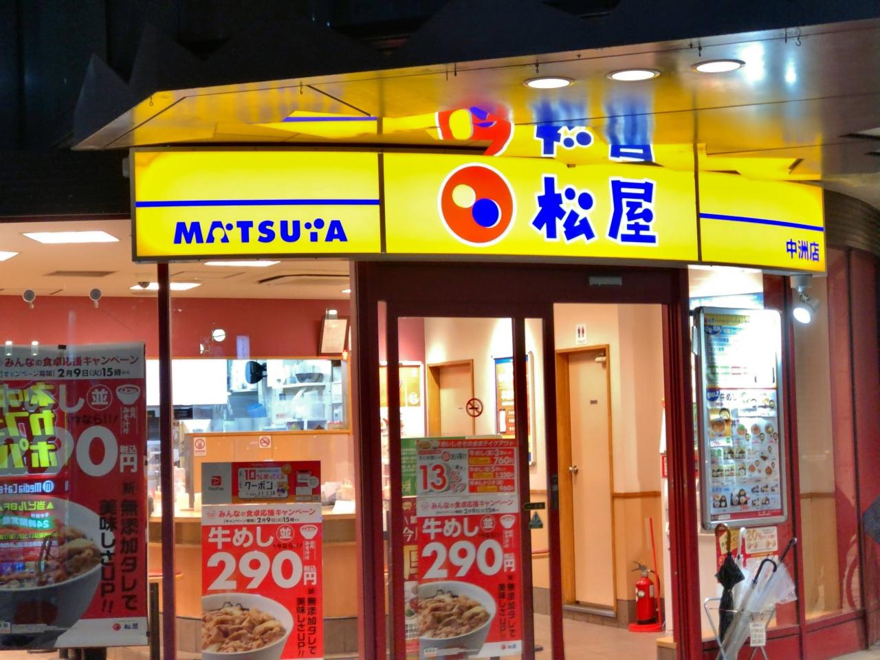 午前5時過ぎにチェックアウト、ホテルのビルの向かいにある松屋で朝食です。