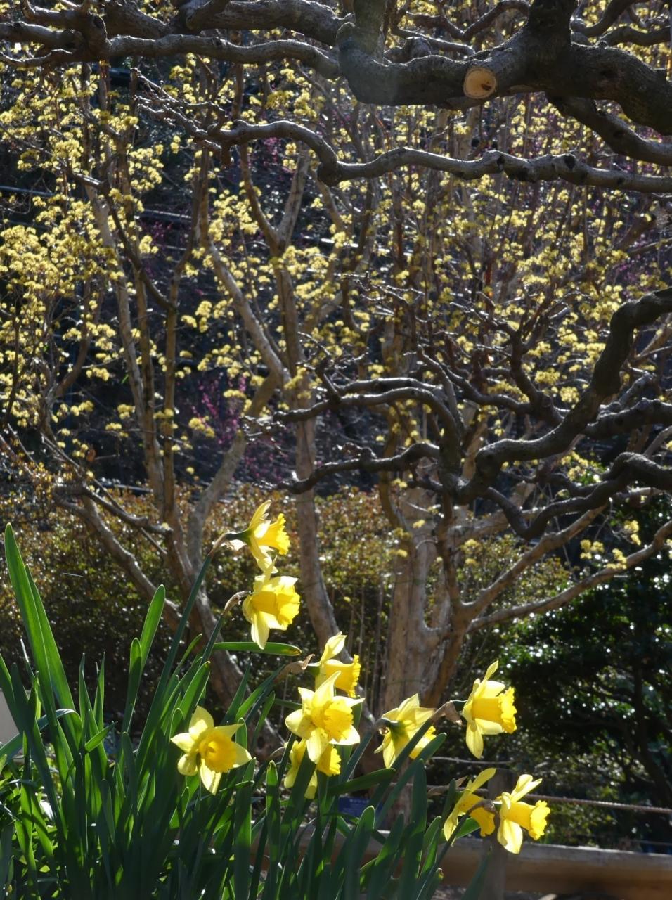 ロウバイや紅梅も見えます。
