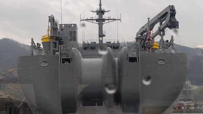 雨が強くなってきて戦艦巡りの船に乗ってのツアーどうしょうかと思ったけど 部屋があるっていうから参加した