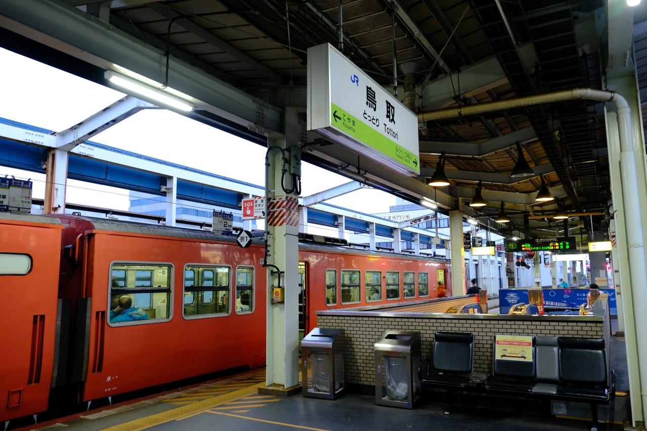 前日入手したサンライズ出雲を米子から乗るべく、土産を買ったり近くのイオンで食事を調達したりして、山陰線の「タラコ」に乗り込みます。鳥取駅 駅