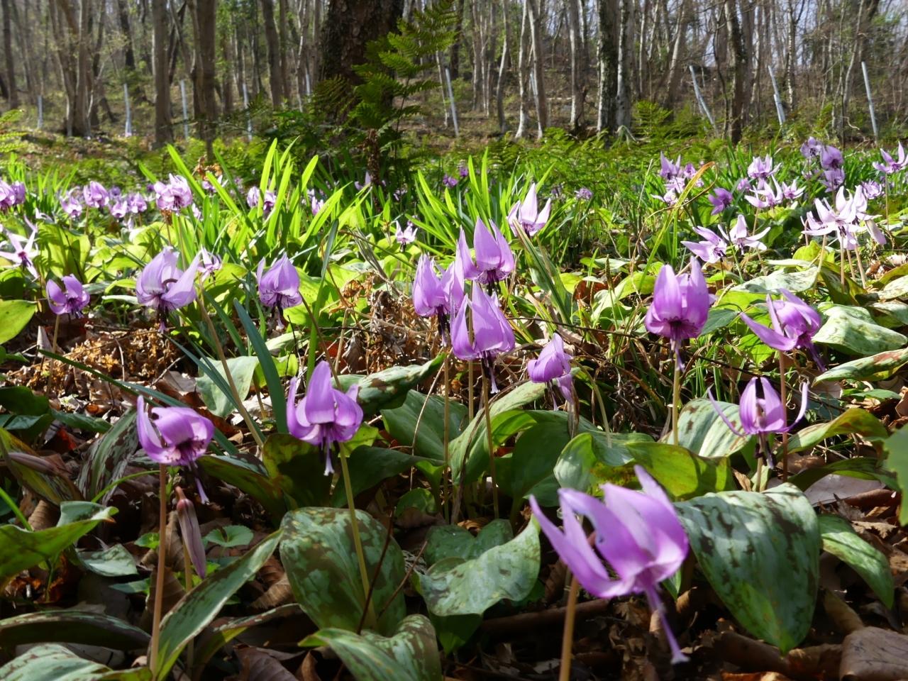 カタクリの群生地って、北向き斜面の林の中が多い、ような気がします。