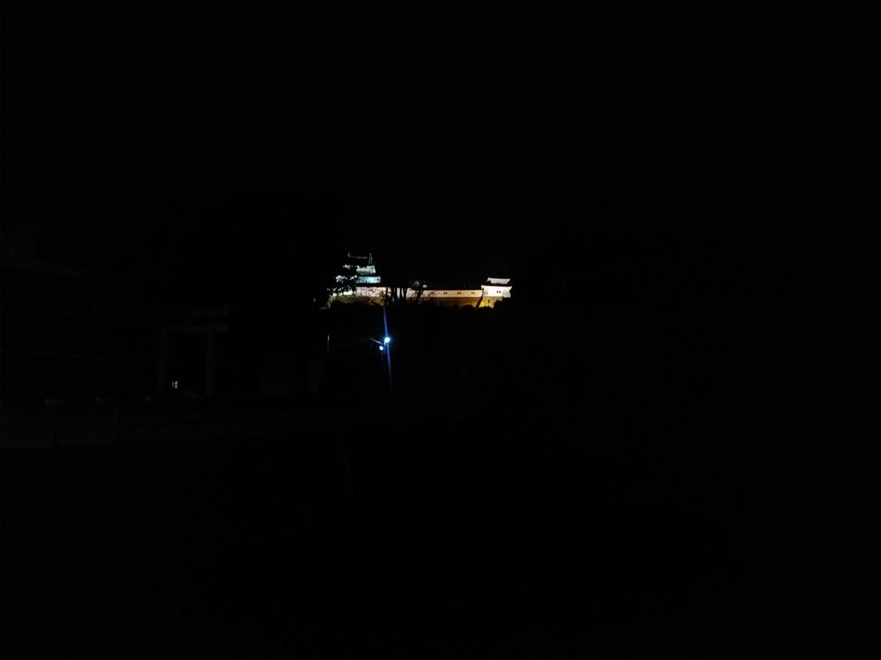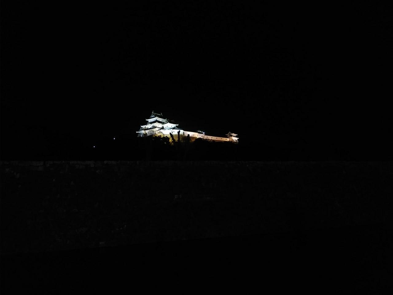 45分程部屋で休憩後、和歌山城のライトアップを見に行きます。公園の外周沿いからです。天守閣は離れた高台にあるので、小さく見えますが美しいライトアップです!