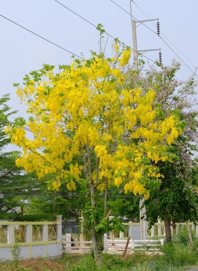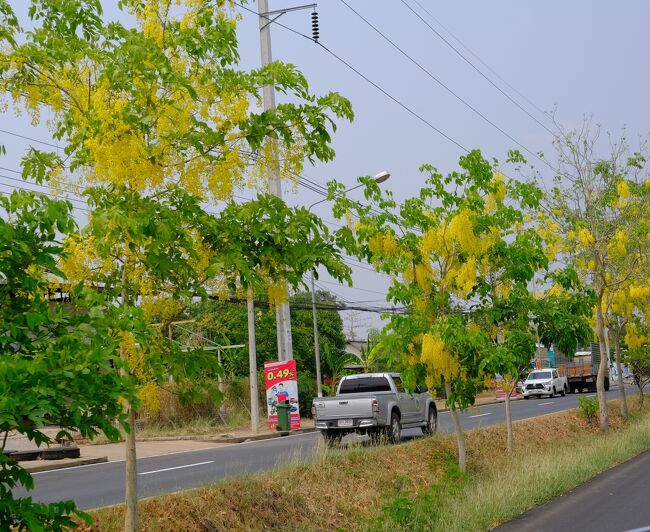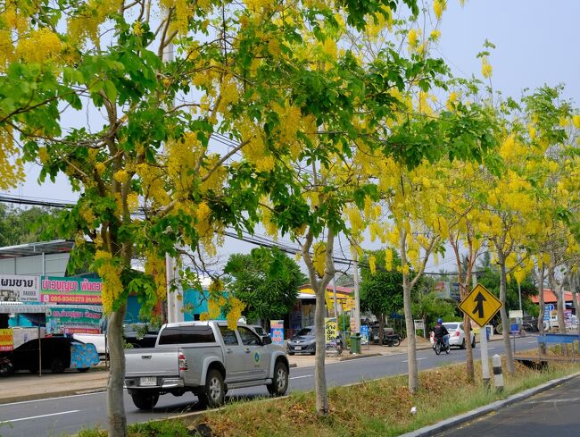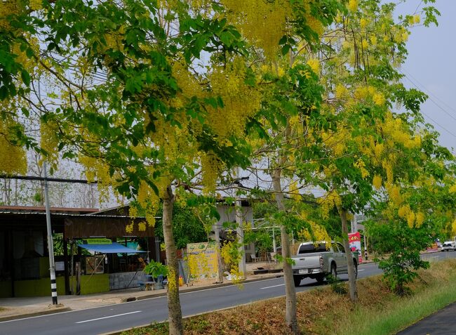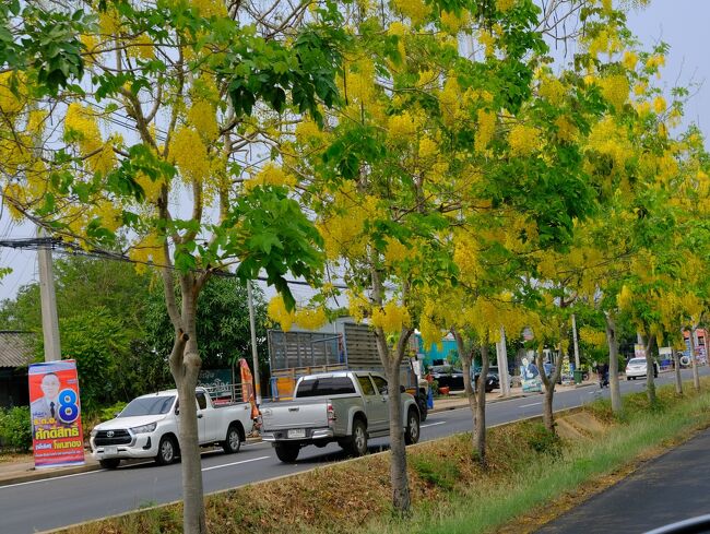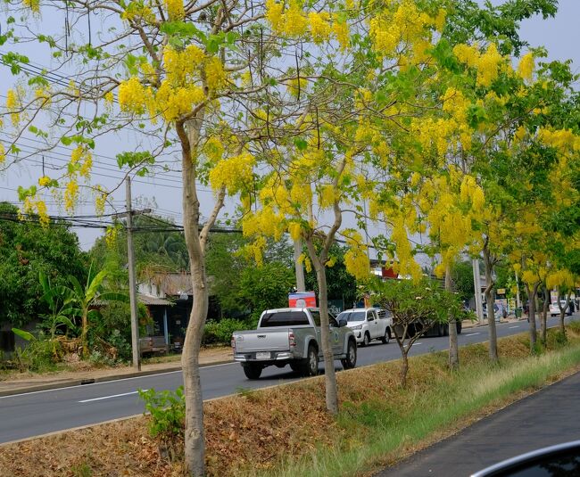 道路の脇にはゴールデンシャワーの花が8分咲きで綺麗それが長く続く、来月のソンクラーン時期(4月13日~15日)には満開になる事でしょう。