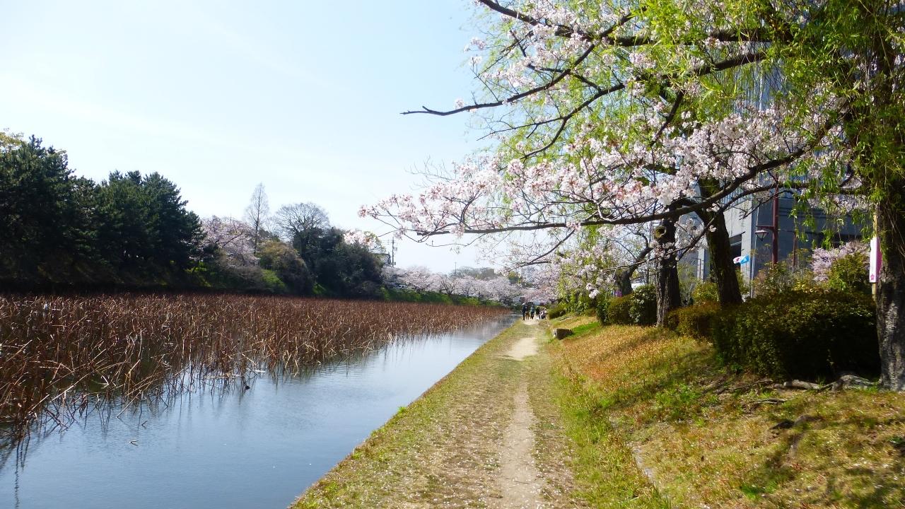 お堀沿いを西側に向かいます。