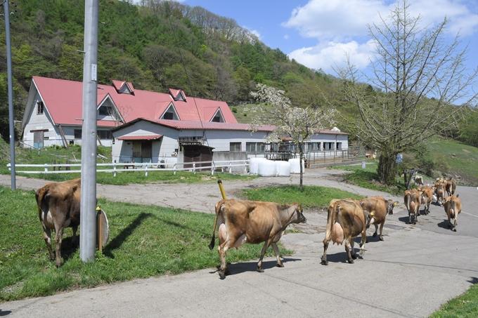 時々道草を食う牛もいるけど、整然と並んで歩いて行く様子は圧巻!