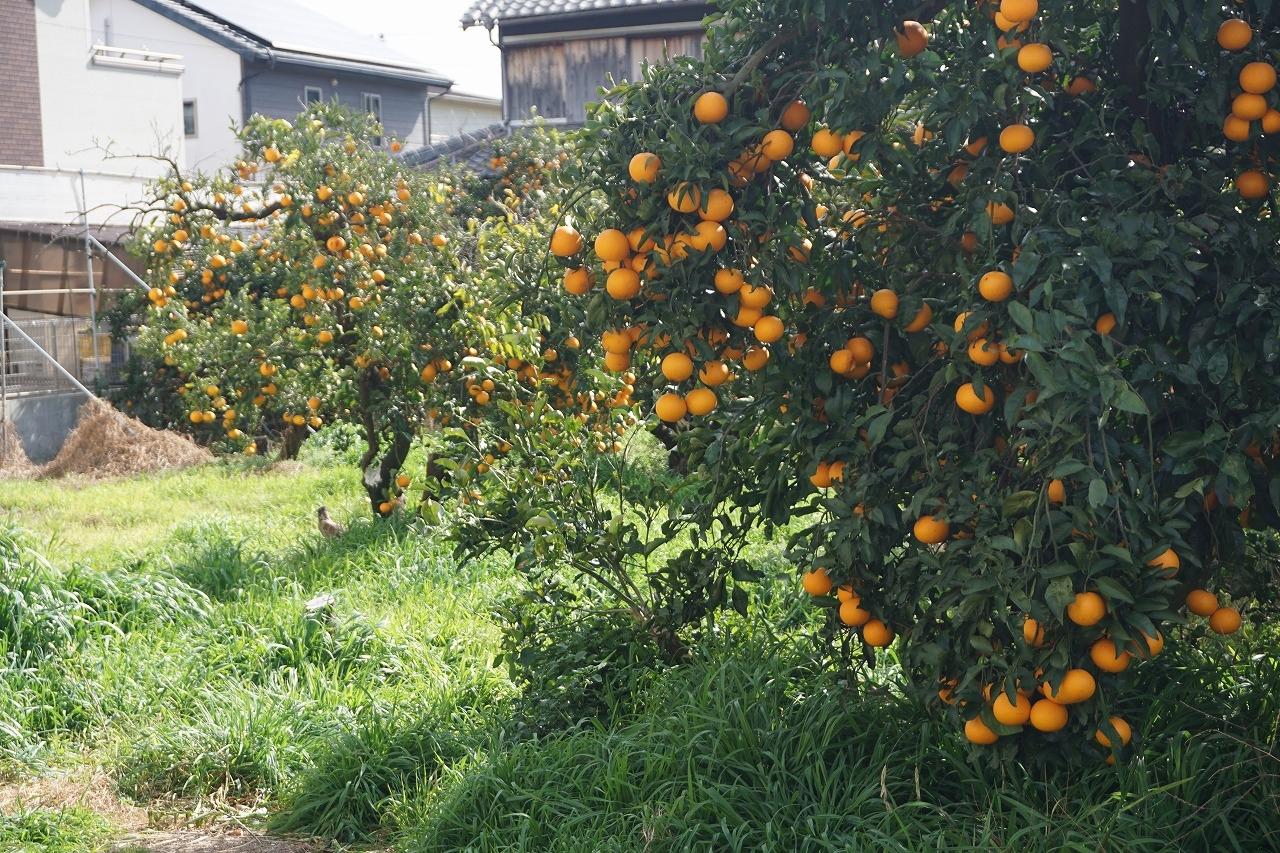 周囲は、お店の名前の通りみかんの木がたくさん。 -