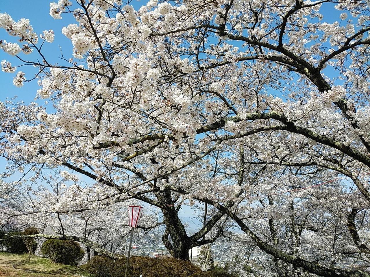 山々も視野に入ってこれもまさに絶景ですね!山に眼下の満開の桜!良くこのような景観を作り出されていますね!もう何の言葉も出ません!