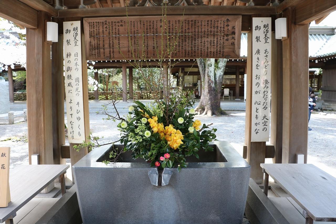 御手水には明治天皇の詩が飾られ、献花がされています。