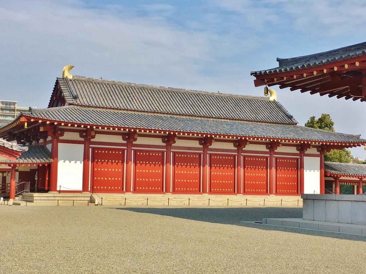 四天王寺は、593年に聖徳太子が四天王を安置するため創建した、日本初の寺院です。戦争などで一部の堂宇を残して焼失しましたが、飛鳥時代の創建時の外見が忠実に再建され、当時の面影を感じることが出来ます。