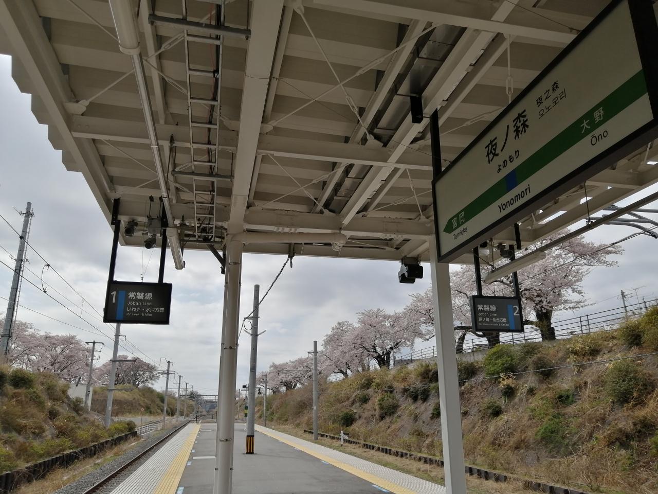 いわき駅から常磐線で夜ノ森駅に到着しました。この旅、ひとつめの東北の駅百選駅です。駅名がかわいいし、桜の名所だったので桜の時期に来ようと思っていました。 -