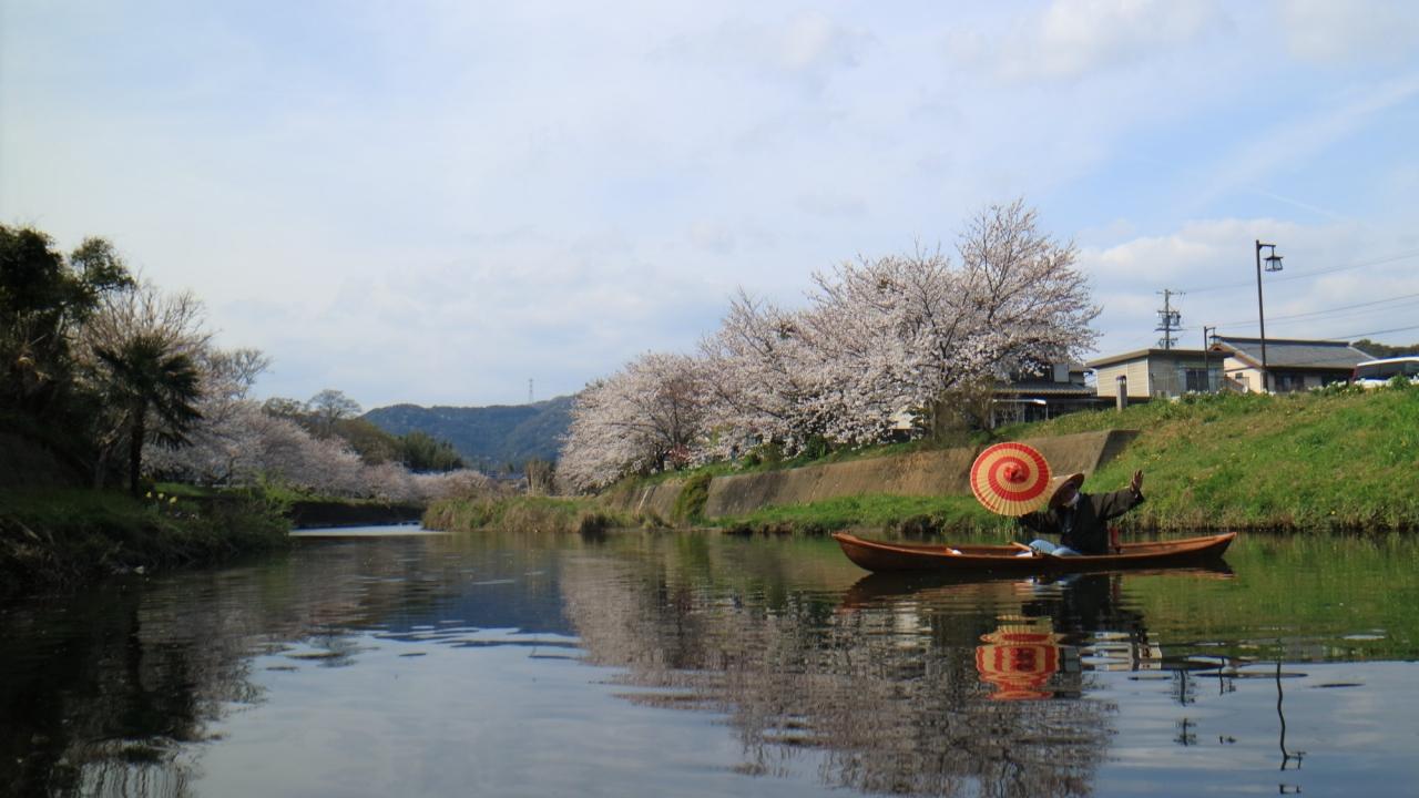 岡崎城の少し東にある竜美会館の河津桜で和船を漕いできました