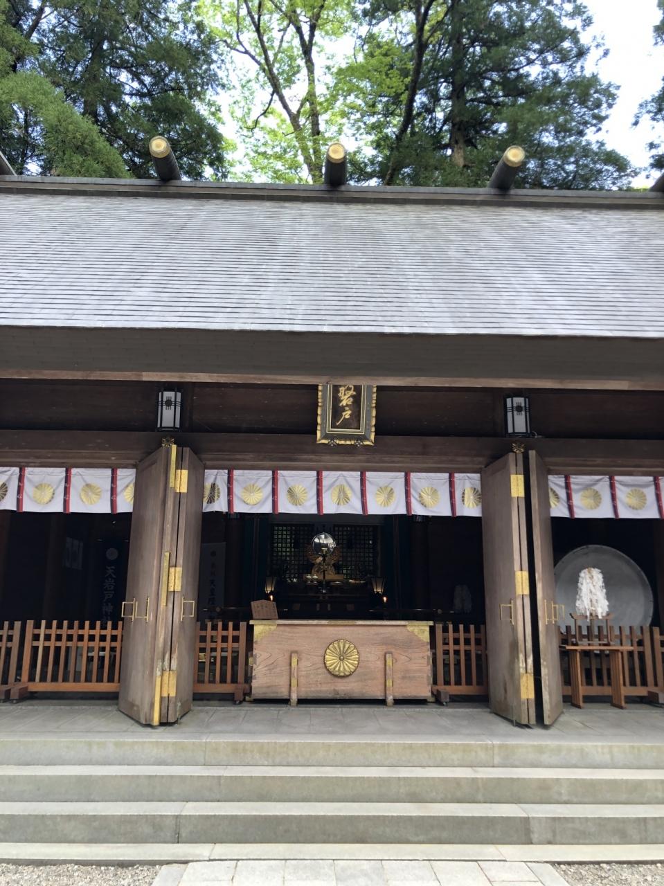 天照大御神様のお隠れになられた天岩戸と呼ばれる洞窟を御神体として御祀りしており、天岩戸神話の舞台となった場所です。