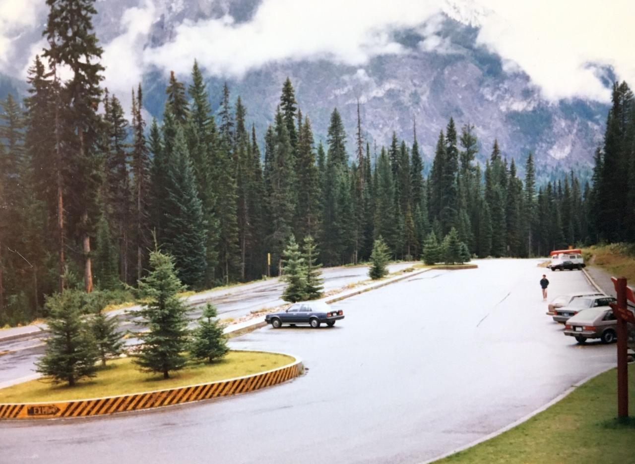 1984年のバンフ カナダ カルガリー空港 からレンタカーで行きました。1時間45分かかりました、でかいのが、やっちゃてますね。