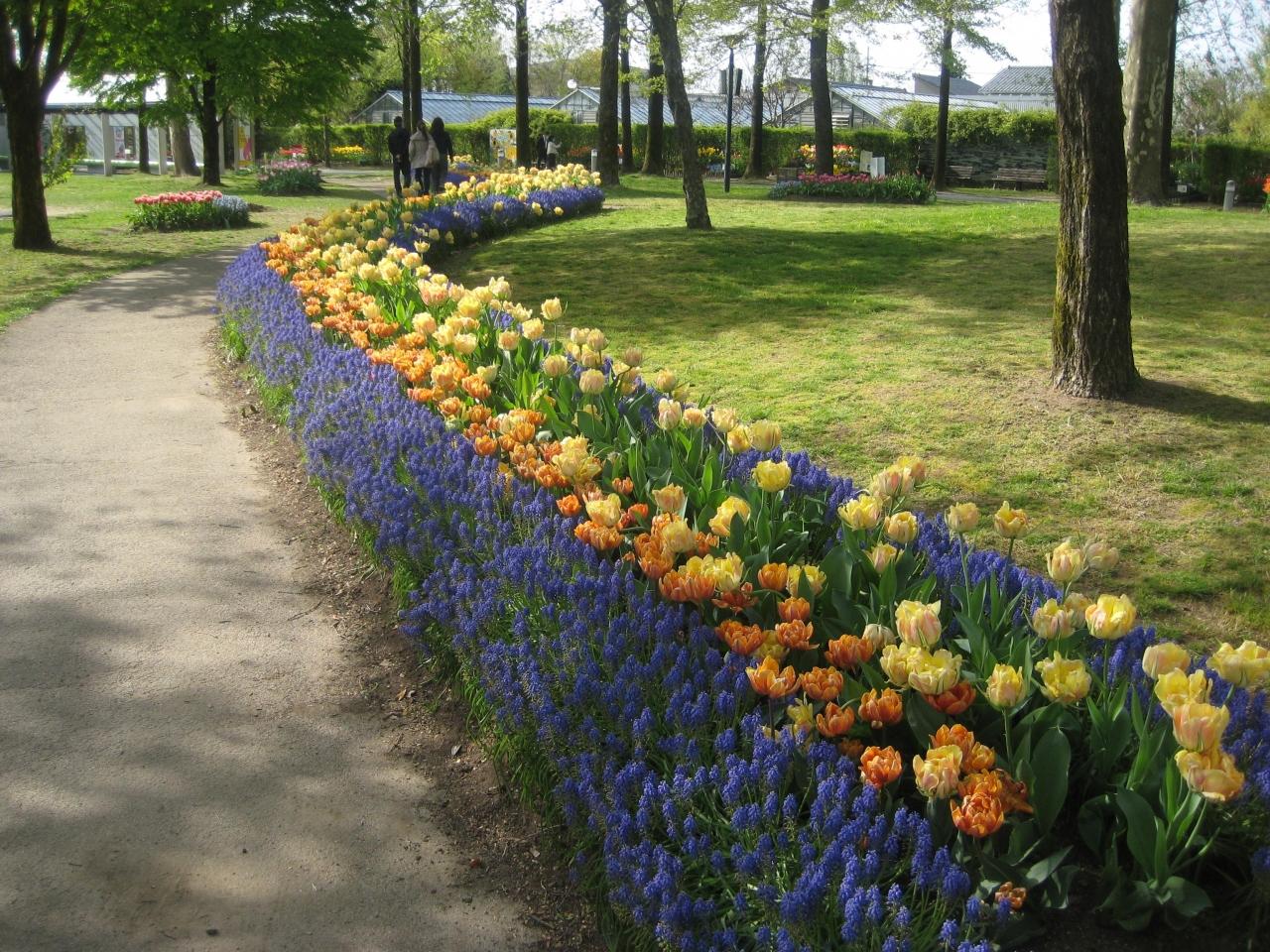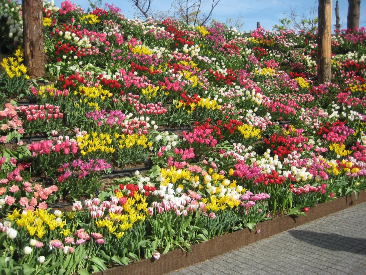 回廊を出たところは色とりどりのチューリップ。一層きれいに見えます。