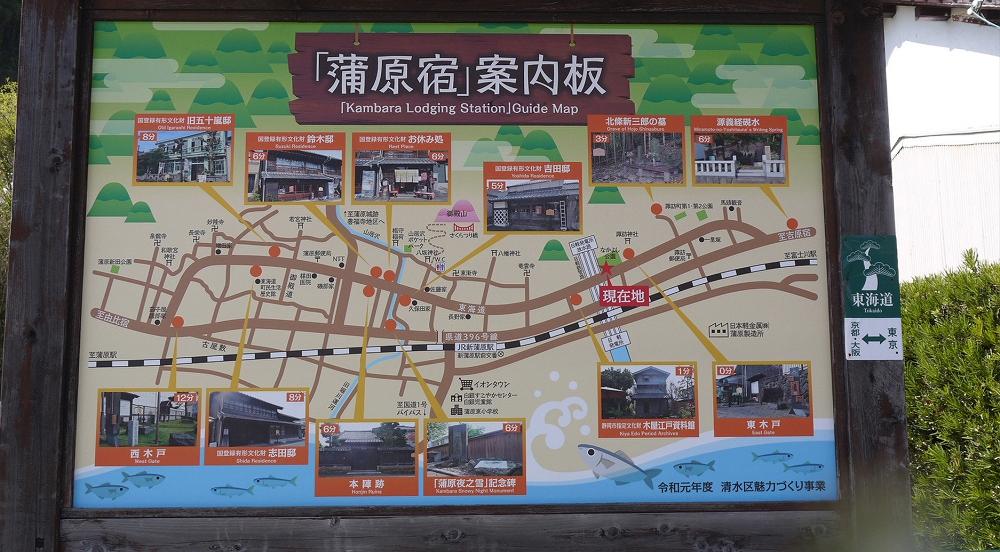 左下から「由比」「蒲原宿」「蒲原宿」「中乃郷」「岩淵」です。