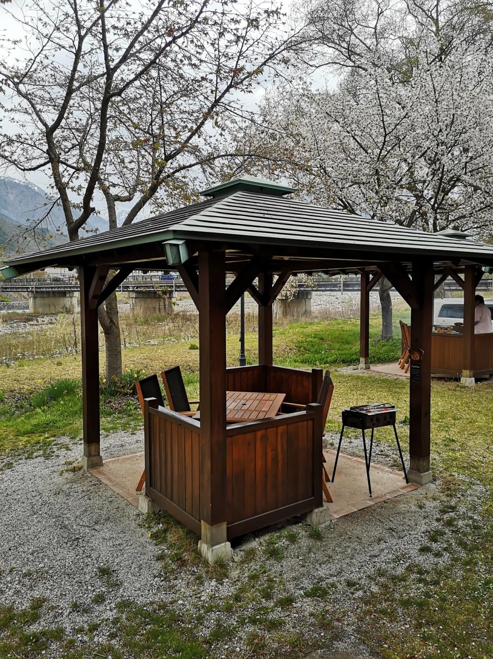 受付の方から説明聞いて、ログハウスの横に駐車 -