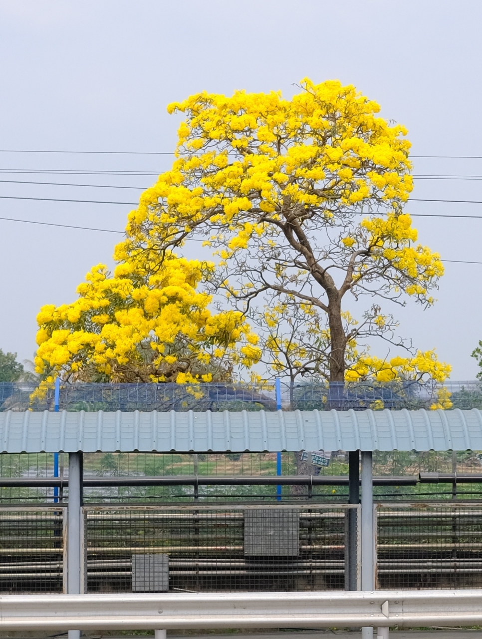 3月22日 8:35 車中からゴールデンシャワーが満開ではありませんが咲いています。