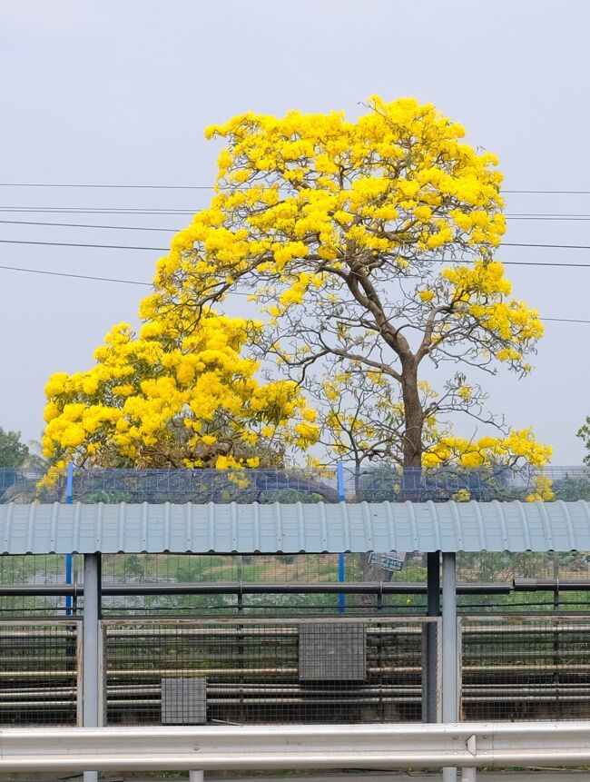 車中からゴールデンシャワーが満開ではありませんが咲いています。