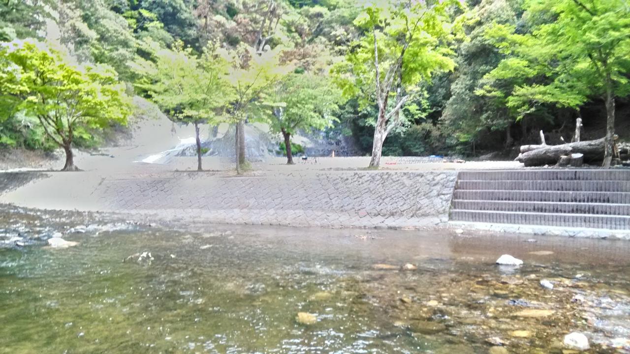 橋の真ん中から。写真右側はお寺の下になりますが、キャンプ場が整備されつつありました。