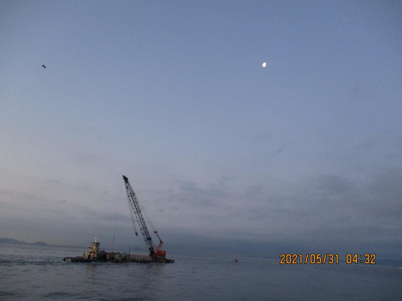 0334.今朝もテトラを運んでいきます。ずっとかなり遠くになっても大きなエンジン音が響きます。渥美半島の大島の向こうに回って行きました。