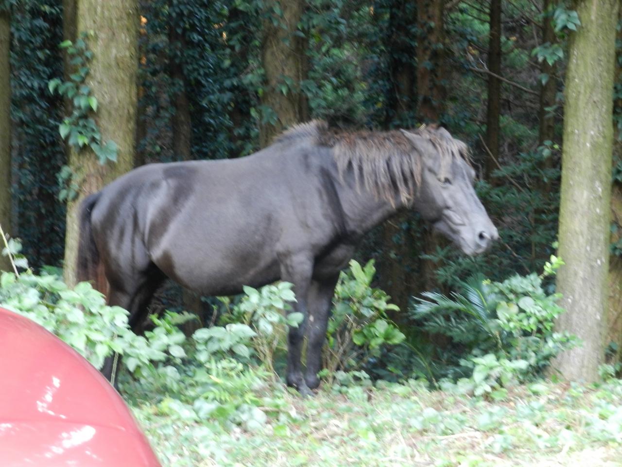 馬たちとぶつからないようにゆっくりと車を走らせました。