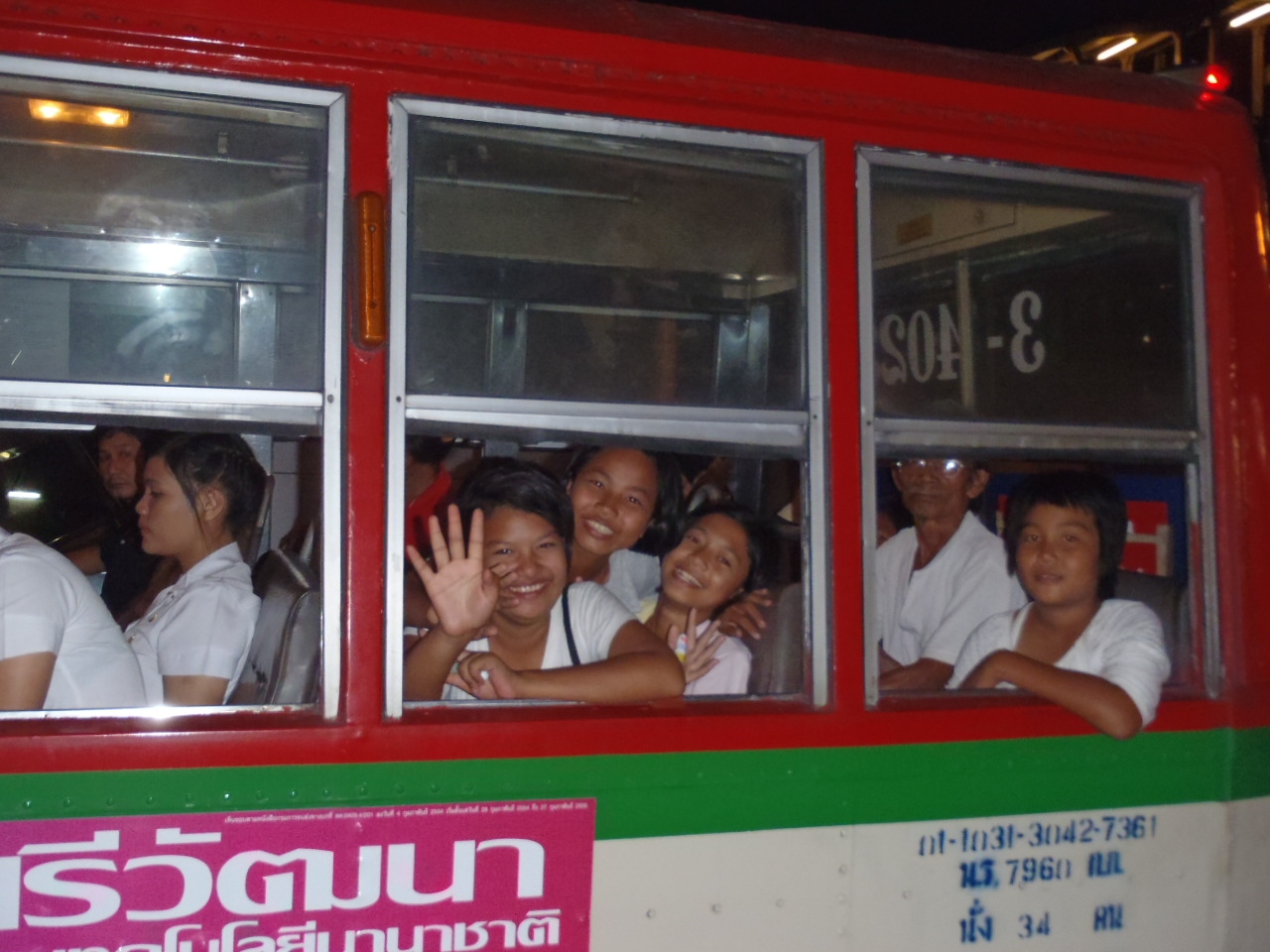 ワットポーからスクインビット通りに通じる赤バスに乗車。バスに乗ったのは18時半だったような。記憶曖昧。長時間乗車でしたが退屈しませんでした。笑顔は最大の贈り物!