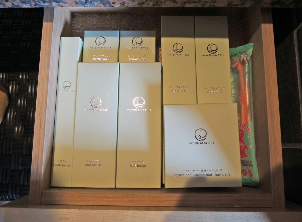 歯ブラシ、ヘアブラシ、コットン、綿棒、シェービングキット、シャワーキャップ。
