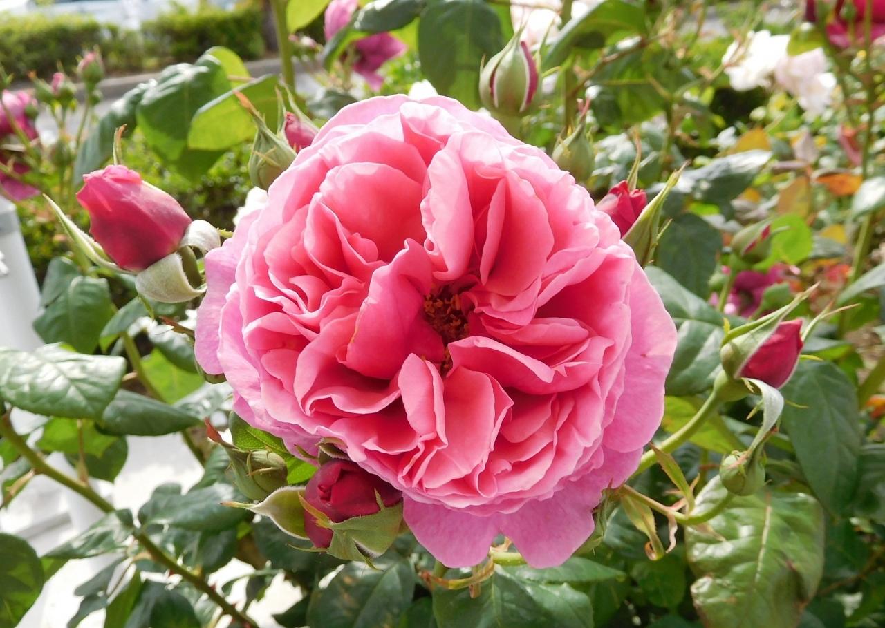 ピエール・ド・ロンサールが色鮮やかに咲いています。