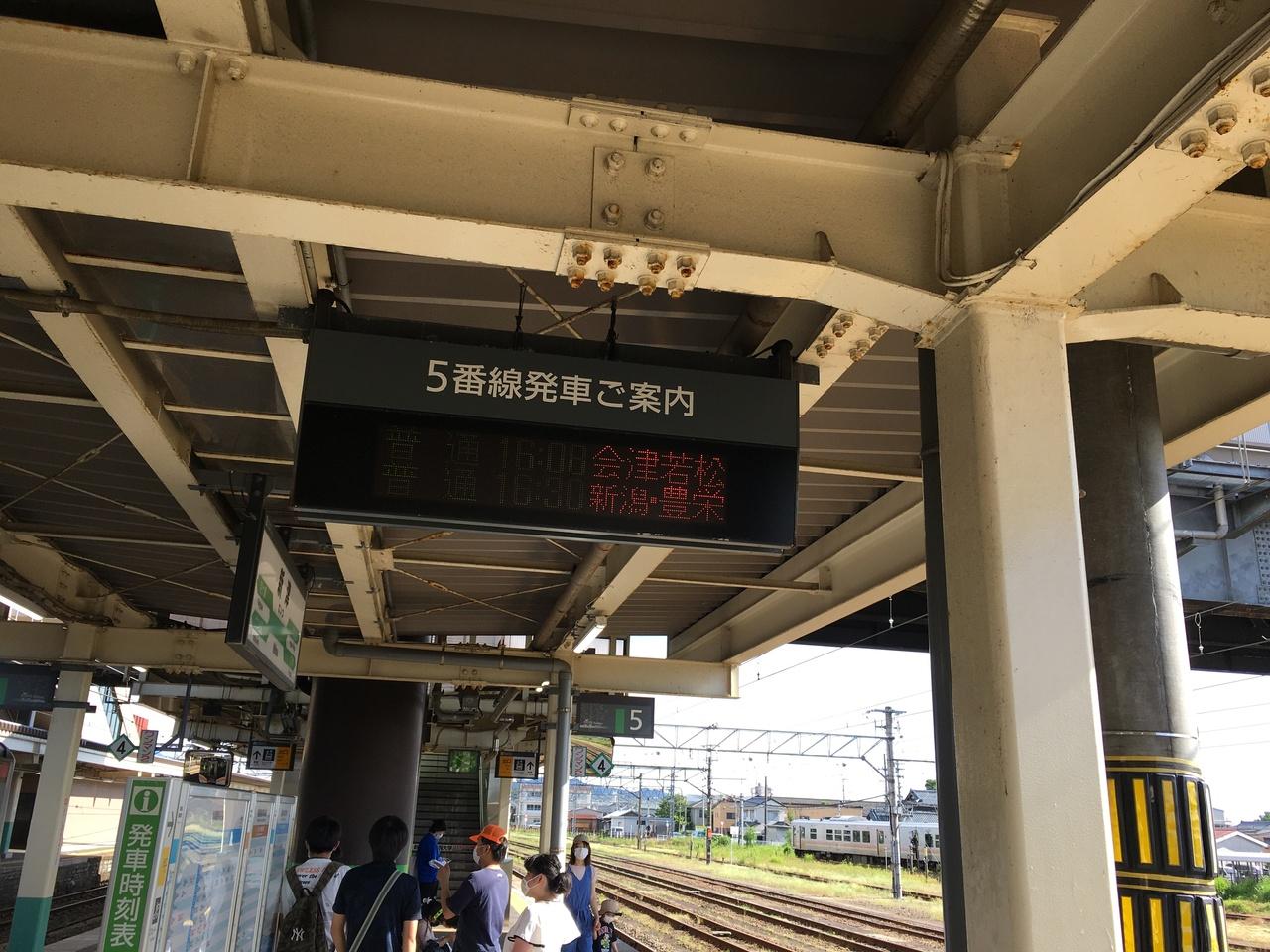会津若松までいく電車が走ってるというのが地理的にピンときません。ここから会津若松経由で東武鉄道で東京に戻れるっていうのですけど、現実味がありません。新津駅 駅