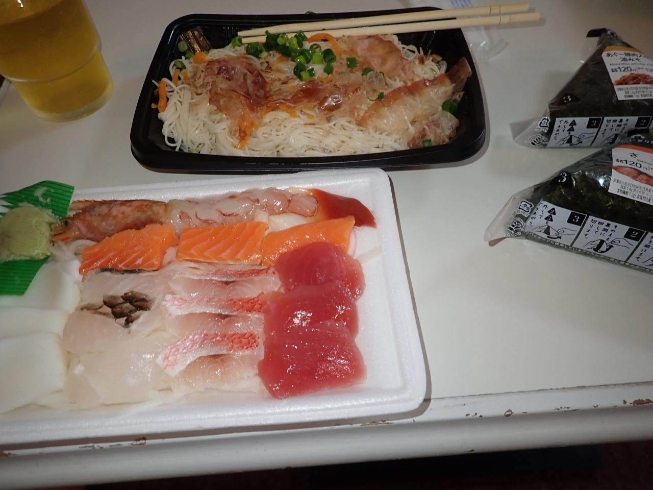 泊りんのローソンでお弁当を仕入れて。