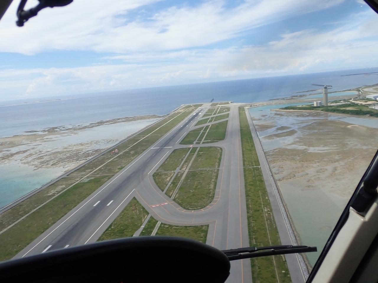南風だったので、左手に第1滑走を眺めて離陸、少し高度を取ったところで第2滑走路をクロスしてナガンヌ島に向かった。