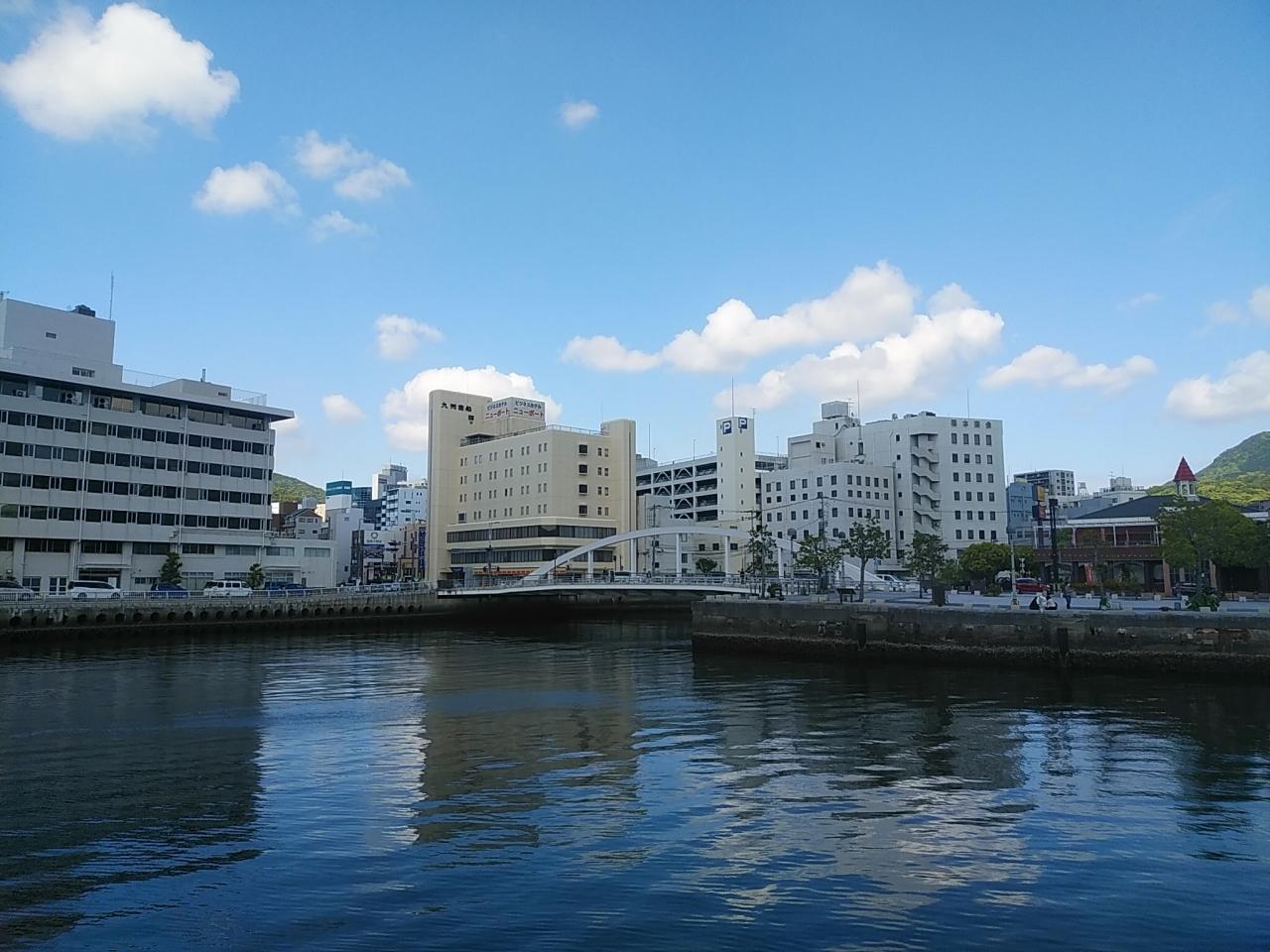 大波止橋です。この方角は物凄い濃い青空です。入江と中島川の分岐点で景観も素晴らしいです。
