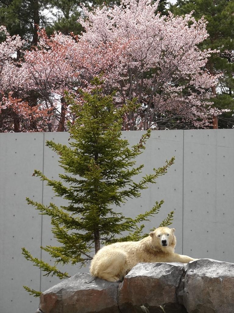 桜とホッキョクグマ。