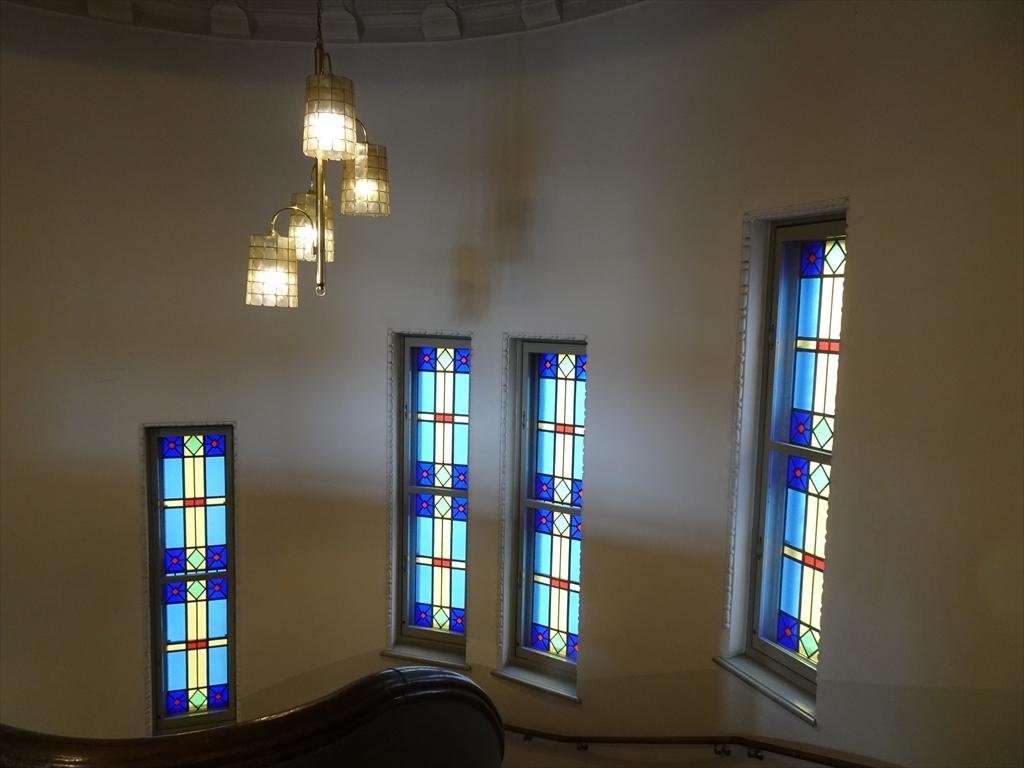 階段のところのステンドグラス。
