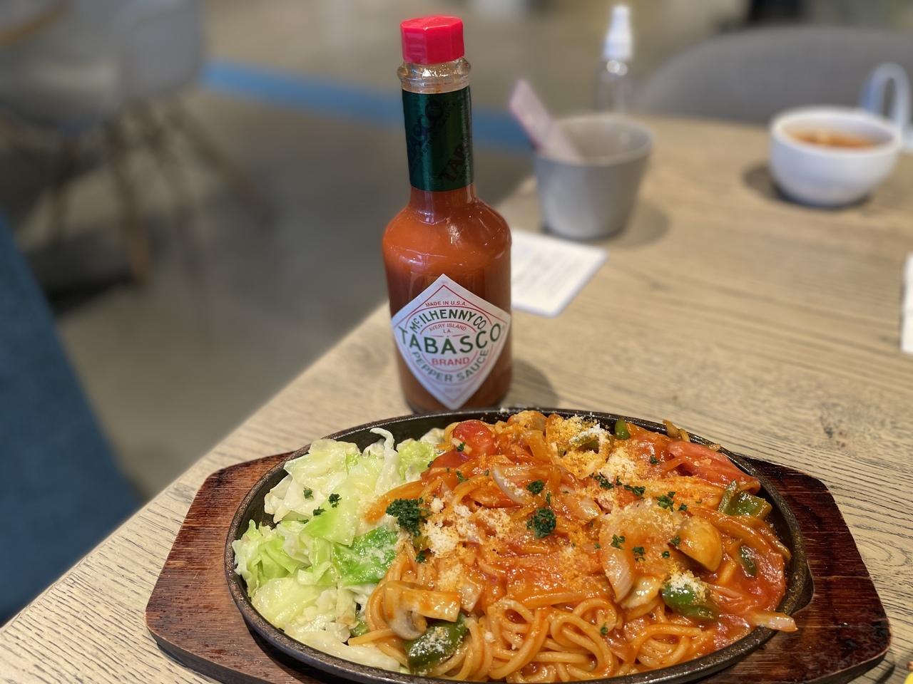 テーブル小さくないかい?トレイはみ出してる┐( ̄ヘ ̄)┌