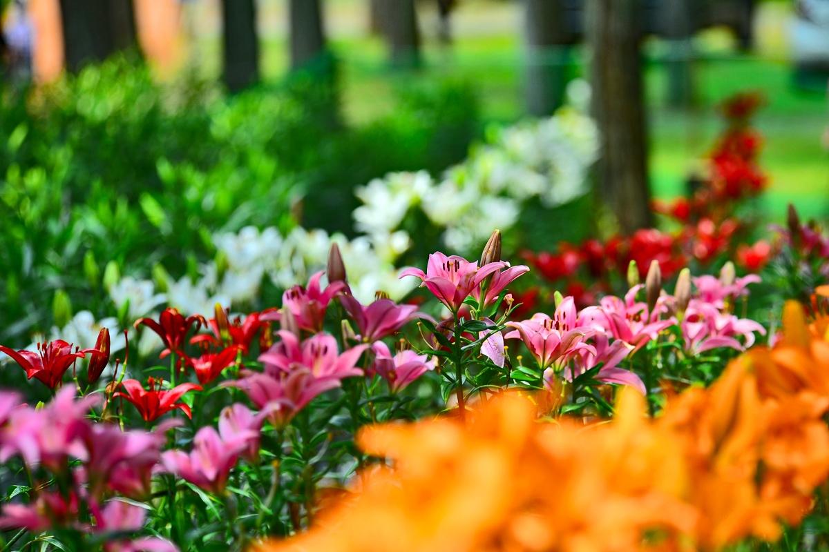 ユリの姿や鮮やかな色とりどりのゆり