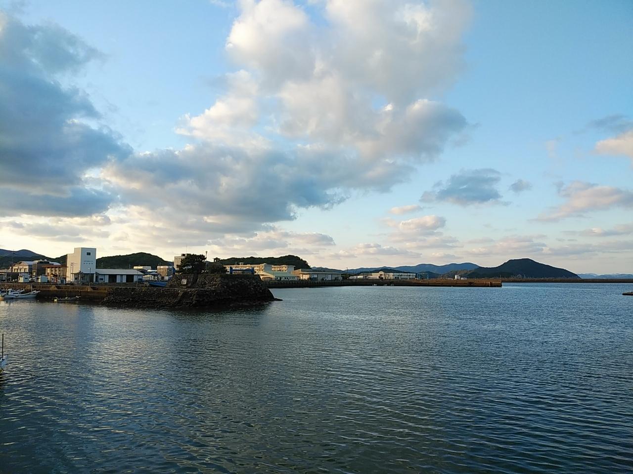夕日が当たっている福江島の街並み、中々良い景観ですね!空も美しいです!