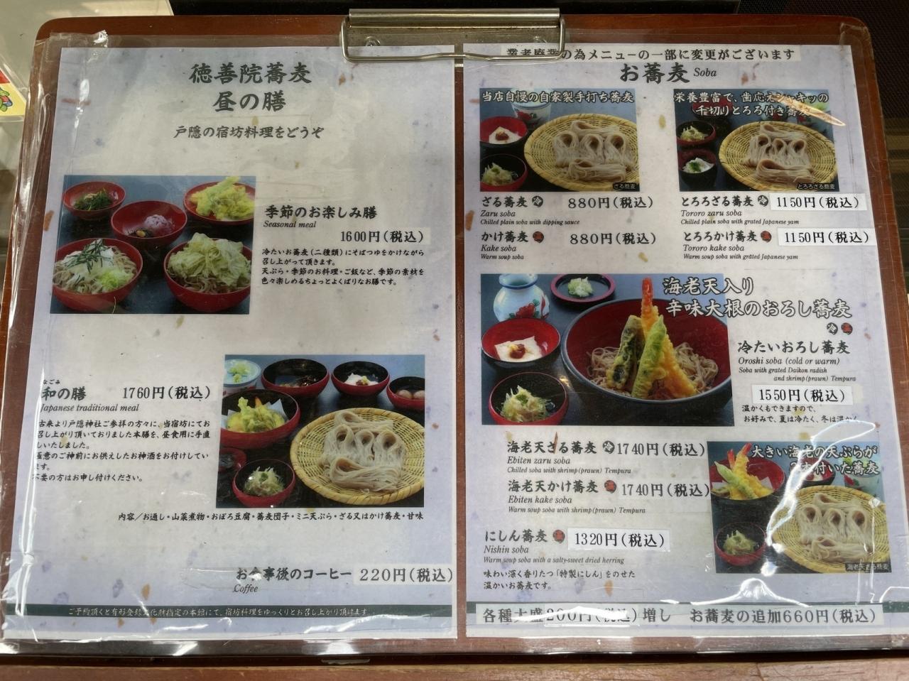 お昼になんとか滑り込んだ徳善院のお蕎麦メニュー