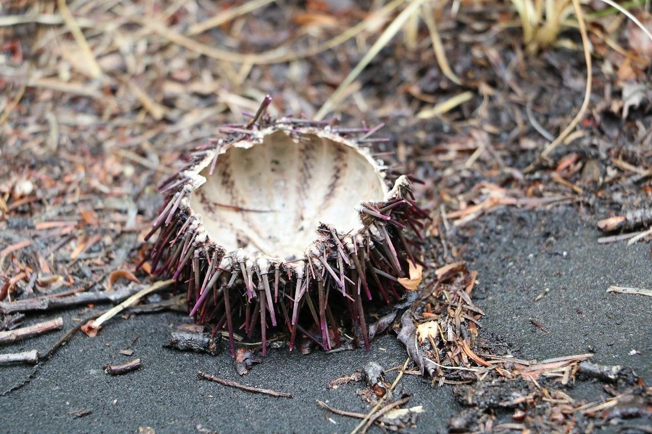 海からちょっと離れた森林公園内ですが、ウニの殻がありました。