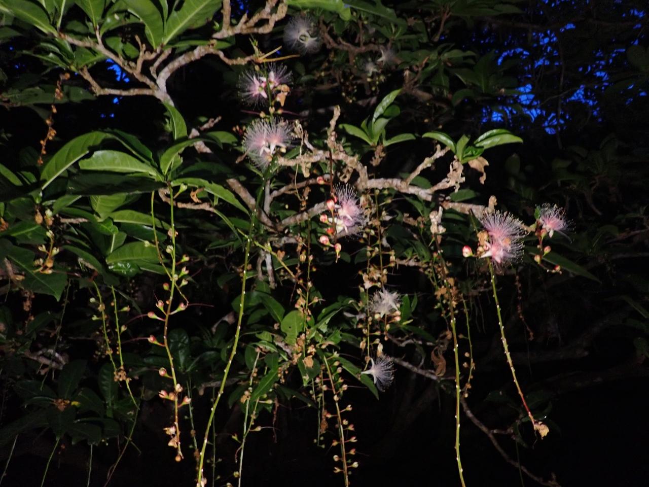 真っ暗な中フクロウの鳴き声を聞いて、マングローブの枝や幹を避けながら、白々としてくると鳥の鳴き声も別の鳴き声に変わり、なにやら甘いいい香りが漂ってきたところに、サガリバナを見ることができました。 -