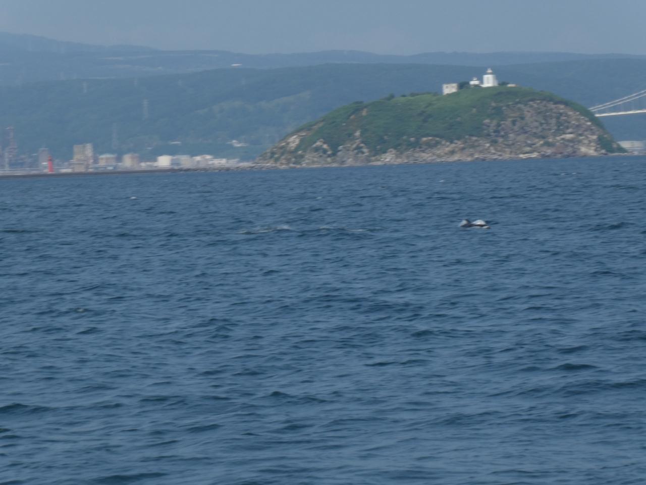毎年6月。7月と室蘭港に現れ、カップリングと子育をして、8月には他へ移動するので、期間限定ですね。時々ですがクジラも現れるそう・・・。