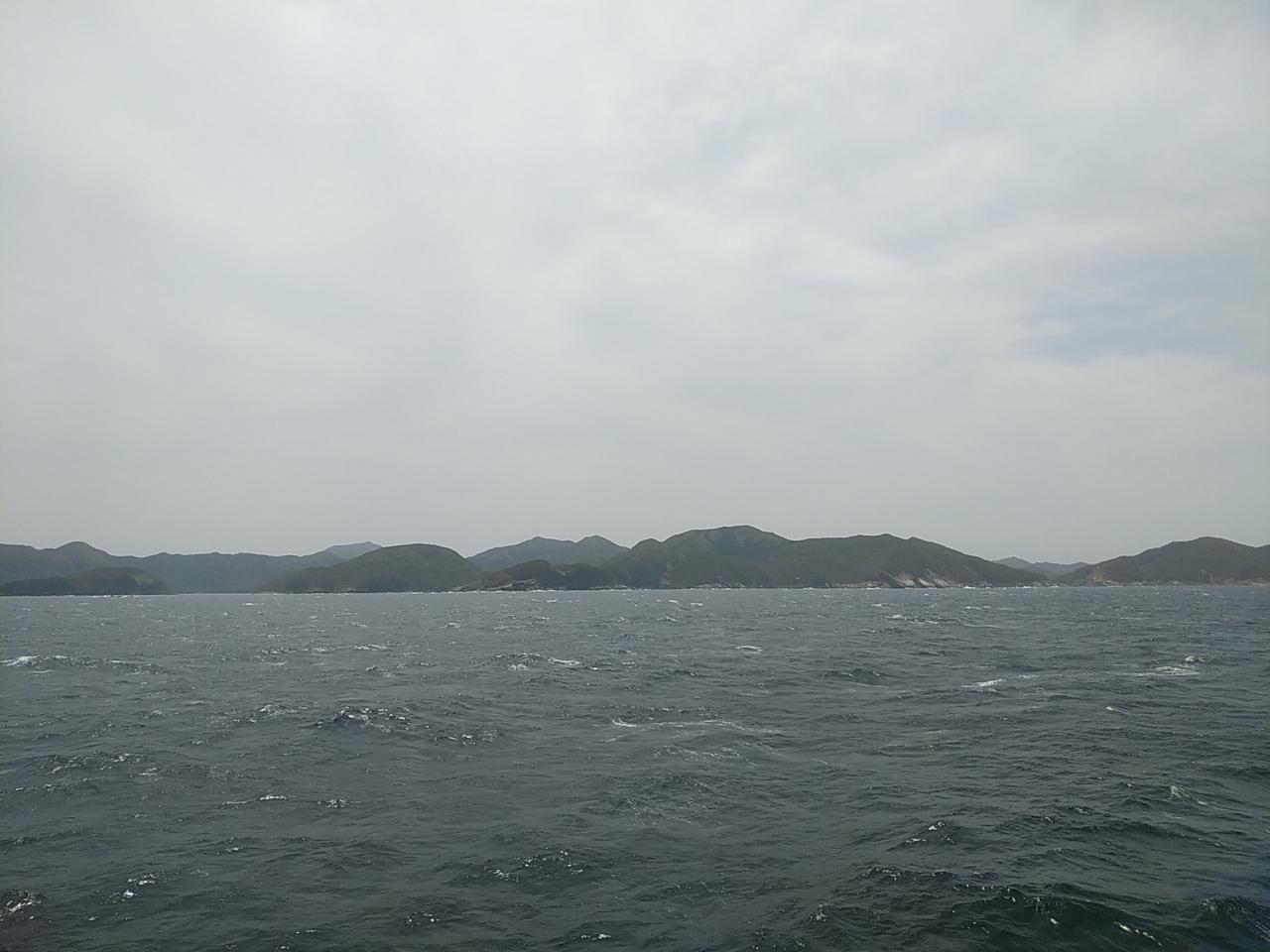 反対側は中通島です。中通島は南北に長いです。下船する青方港はまだまだ先です。