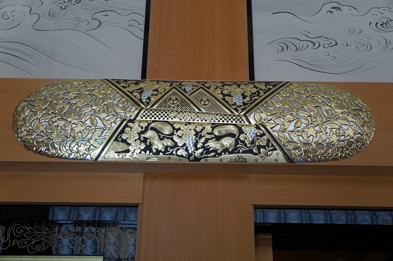 欄間彫刻はジャパニーズ・バロックと呼んでもよいデザインです。これに匹敵するのは目黒雅叙園か松島の円通院か日光東照宮か飛田新地の鯛よし百番くらいしか思い当たりません。彫刻欄間は富貴と平安と長寿を具現化しているようです。