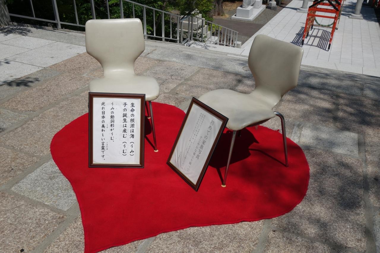 この椅子とハートは、記念撮影用らしい。なんか、遠巻きに見てる人は居るけれど。