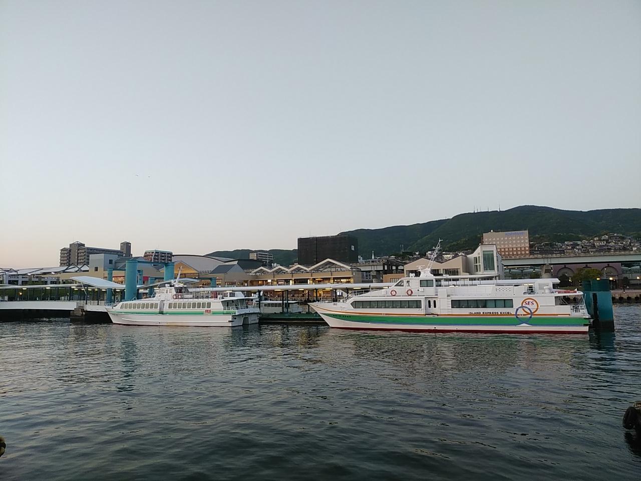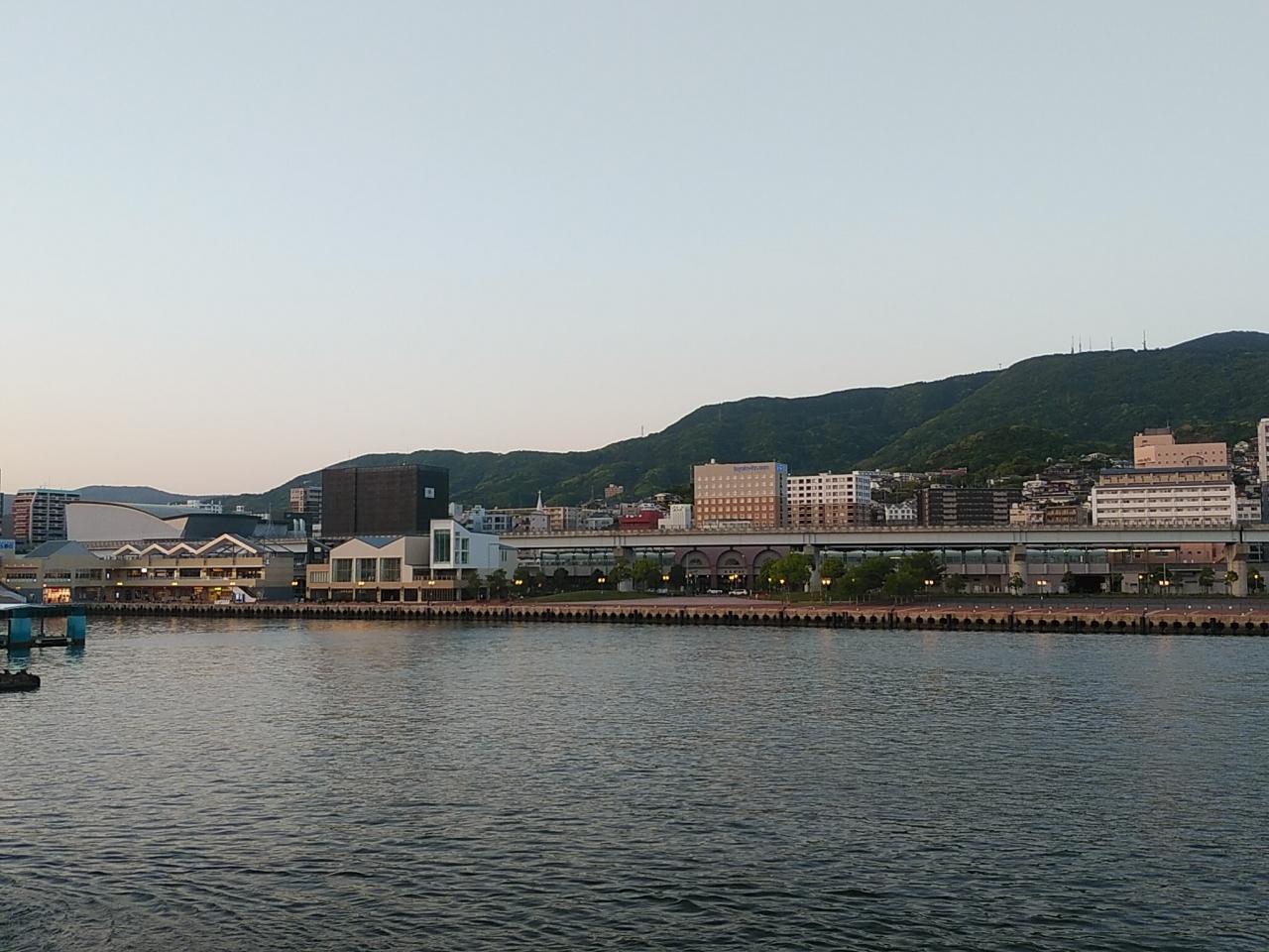 19時、フェリーを下船して佐世保に足を踏み入れます。五島列島の中通島を出発して約2時間半の船旅でした。