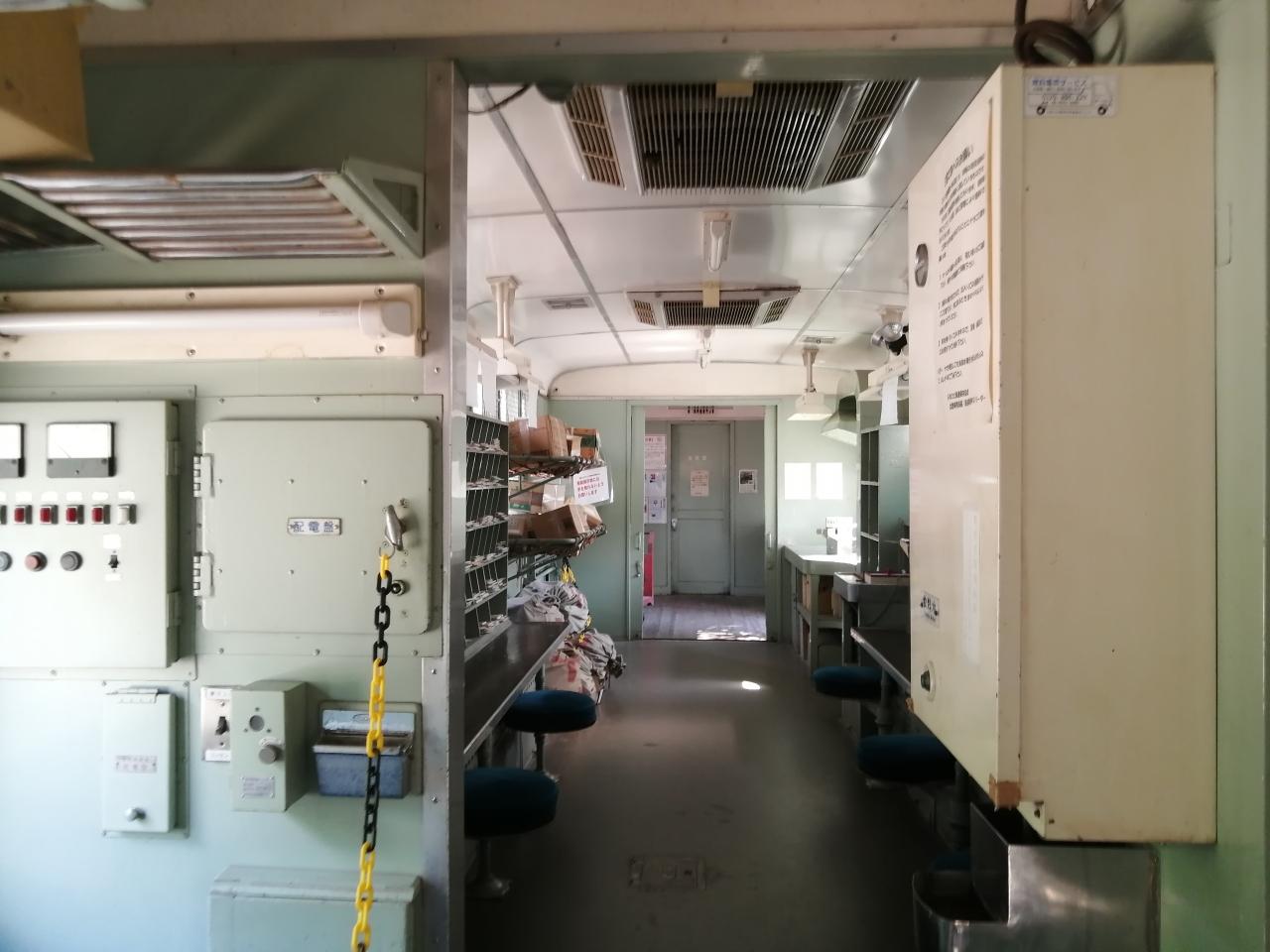 能登中島駅です。ここでは10分停車して全国に2両しか残っていない珍しい鉄道郵便車の見学ができます。郵便車のドアを開けてくれるので中に入ることができます。 -
