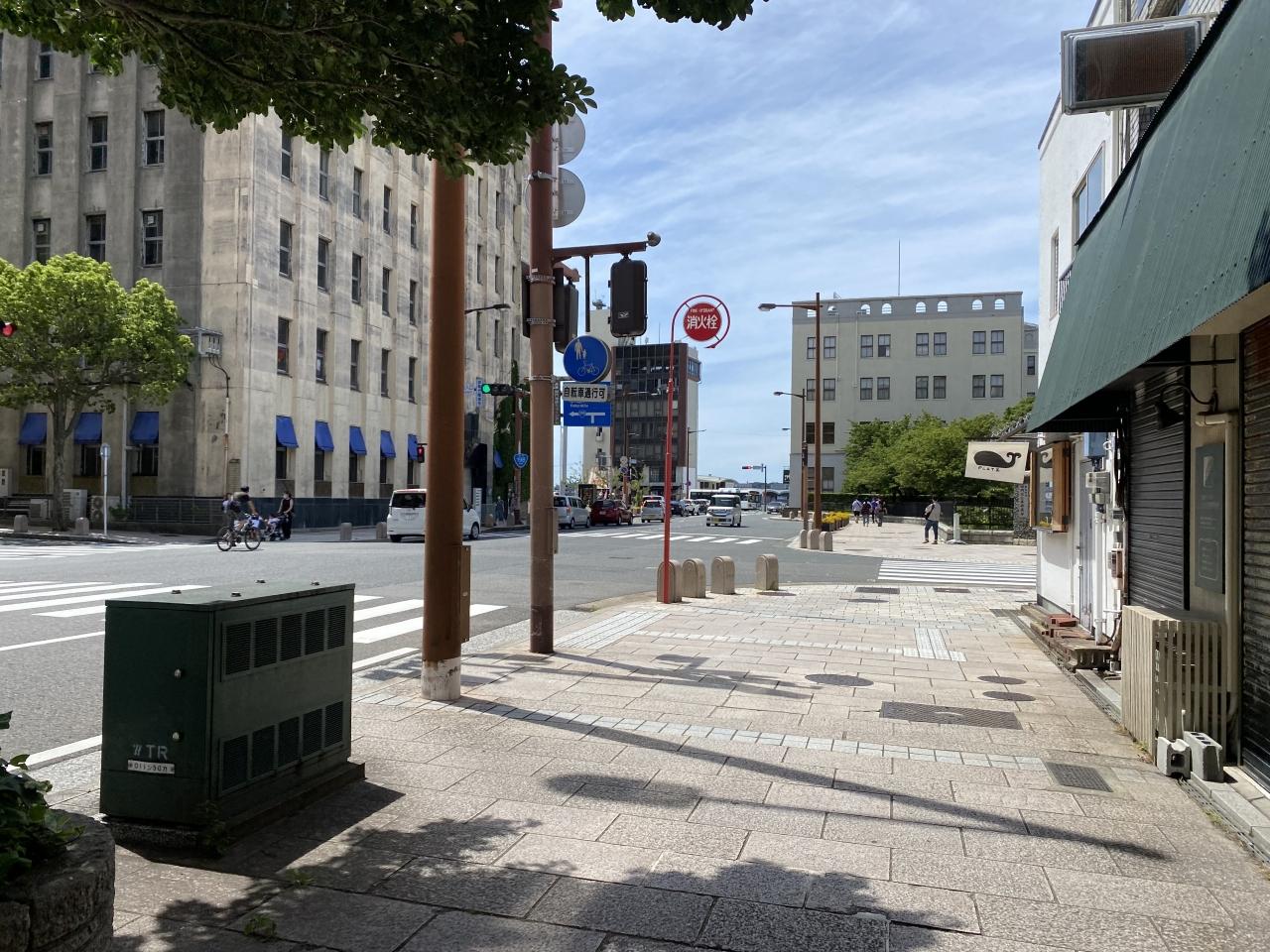 唐戸市場の隣に位置するショッピングモールのカモンワーフの方へ向かいます。 -
