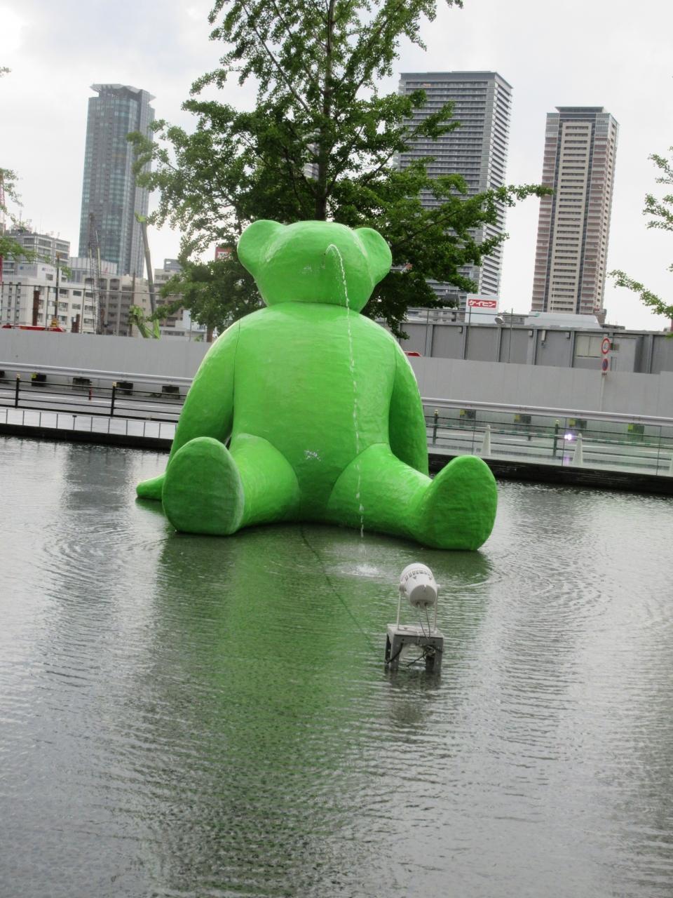 たらよろさんの旅行記で見た緑のクマを発見、わ~い!って走って行ったら危うく手前に水に落ちそうになってしまった。